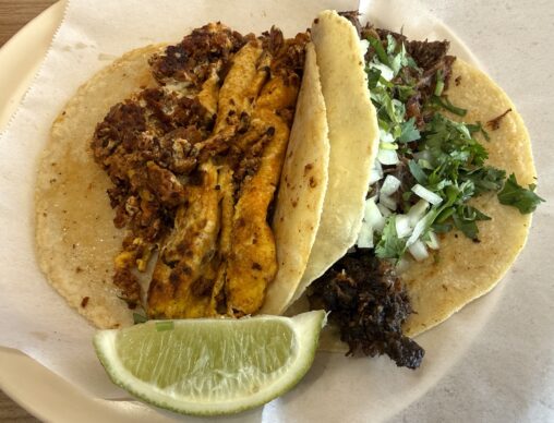 I don’t remember where or when I took this photo but it was happening that day. Barbacoa with cilantro and onions, & chorizo/egg, maybe at La Guarecita. Anyway:…