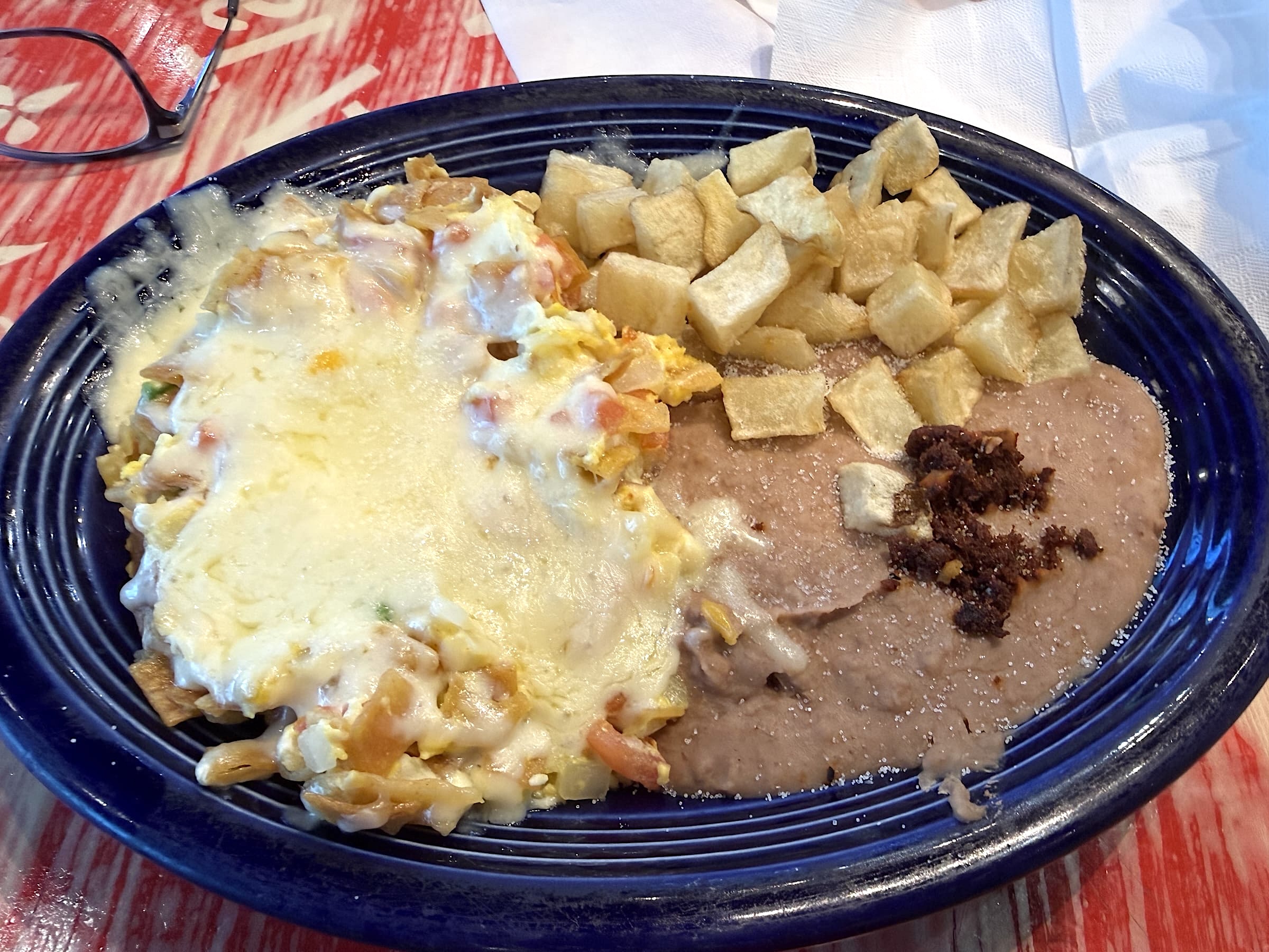At my most recent visit I asked about the delicious tortillas and he told me they are homemade and prepared to order — the dough is pressed and cooked when your order is made, so it comes out hot and fresh. I have also had their migas plate (wonderful for breakfast or any time), and my wife had their cheese enchiladas. Happy diners.